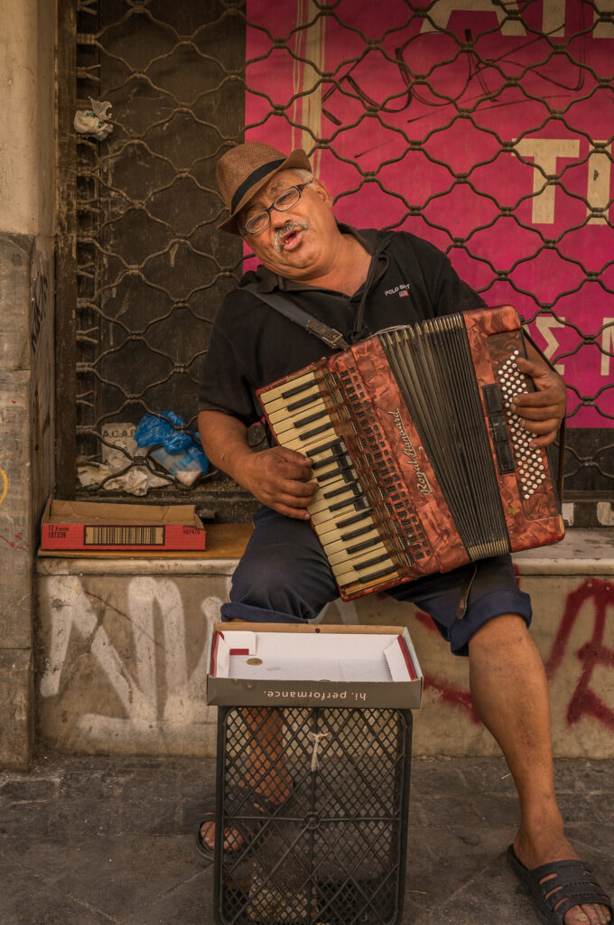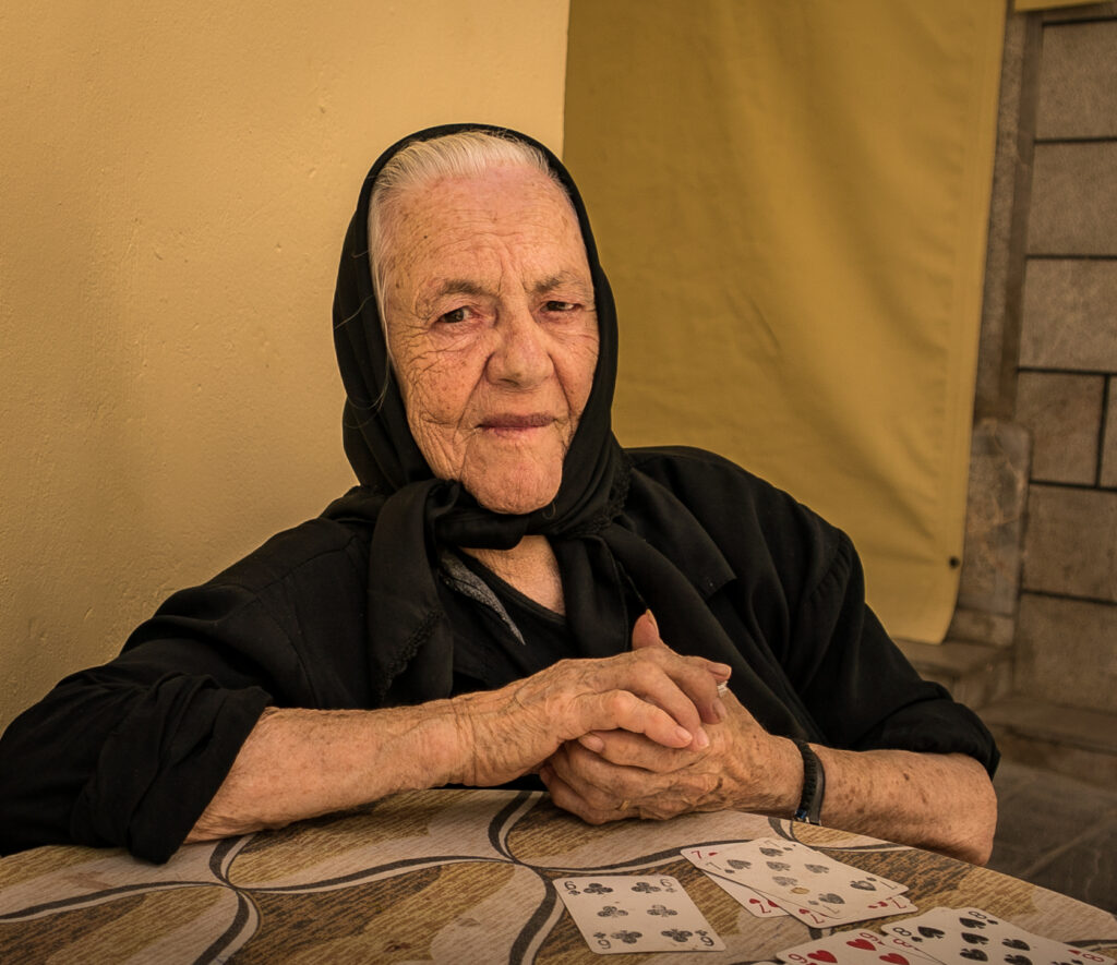 CHIOS – An Island Paradise Chios is a stunningly beautiful island, a seaside tourist mecca known for its bustling port, sailing regattas, and ancient monasteries. After my shifts at the camp, I would walk the narrow streets of the village taking photographs. On the other side of the fence enclosing the camp, I saw locals living lives of normalcy — drinking coffee with friends, going to mass, and sipping ouzo on a door stoop.