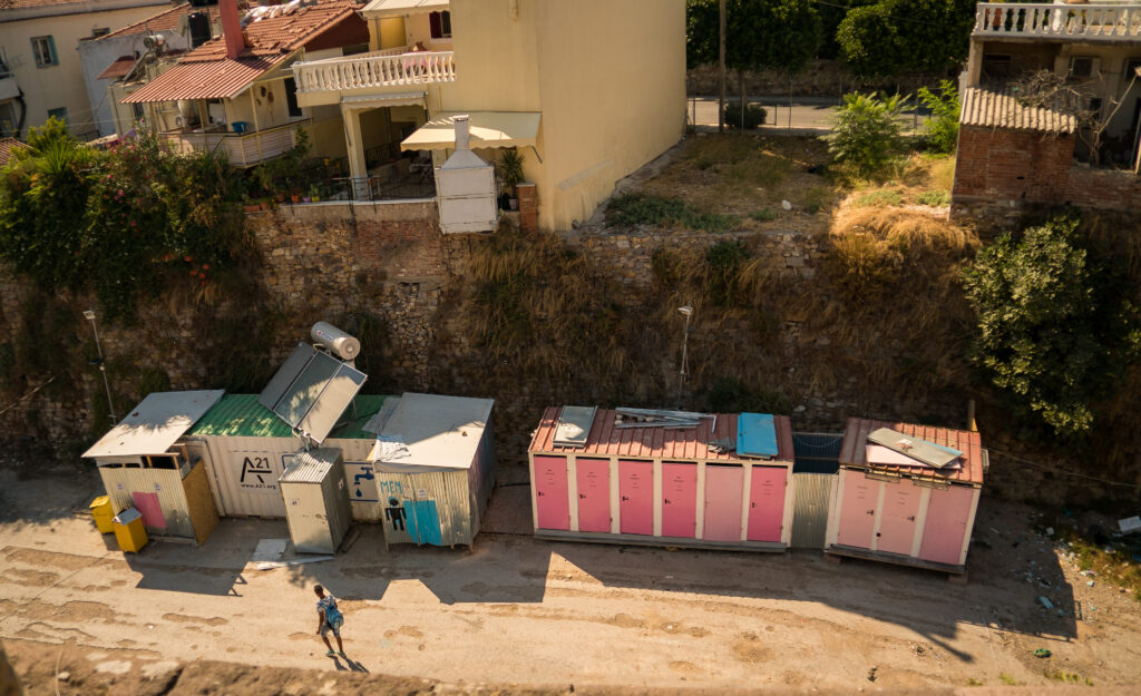 The camp itself was located on the floor of a ancient moat surrounding a Byzantine-era castle (“souda” means fence or moat in Greek). Middle-class homes overlooked the rows of tents and portable toilets, with villagers able to look down on the movements and activities of the refugee city below.
