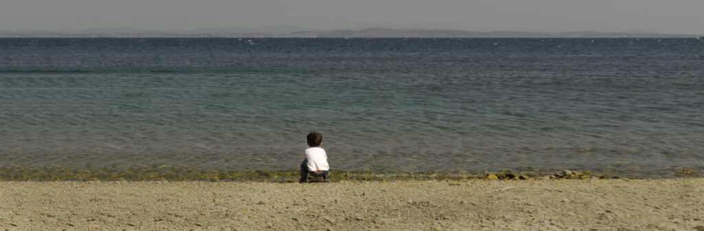 Young Syrian boy on beach next to camp