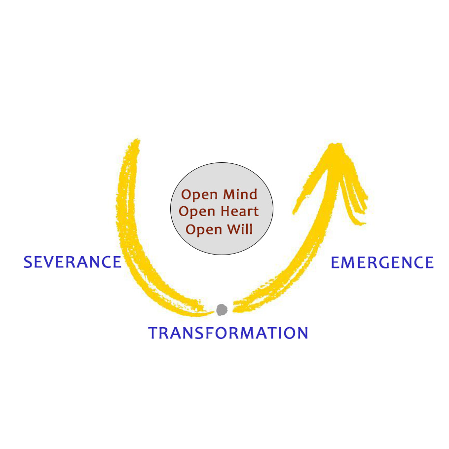 Severance: This is also called the “descent” phase. We must be willing to die to the identity that was constructed by ego in order to survive in this world. We recognize that this identity has served an important purpose, but we are ready to shed the limited, small version of who we think we are.